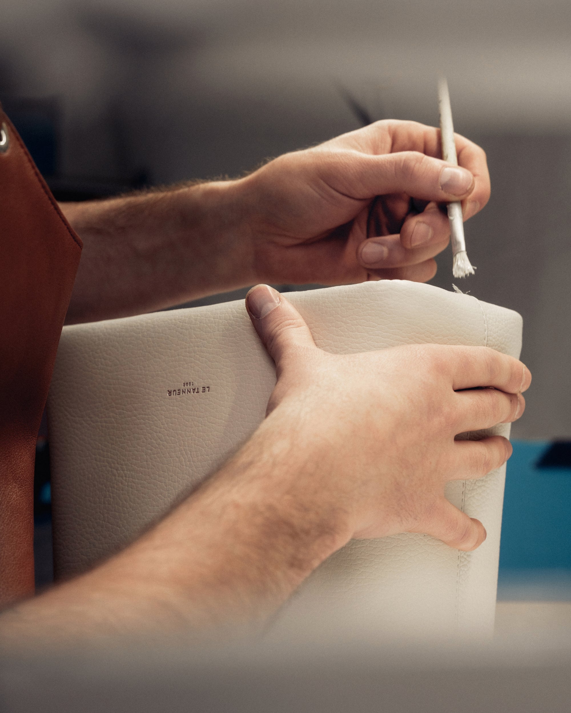 Ils apportent chacun une expertise unique. 100% des cuirs utilisés pour notre collection AH24 sont également certifiés Leather Working Group (LWG), un label chargé d’évaluer les tanneries du monde entier.
