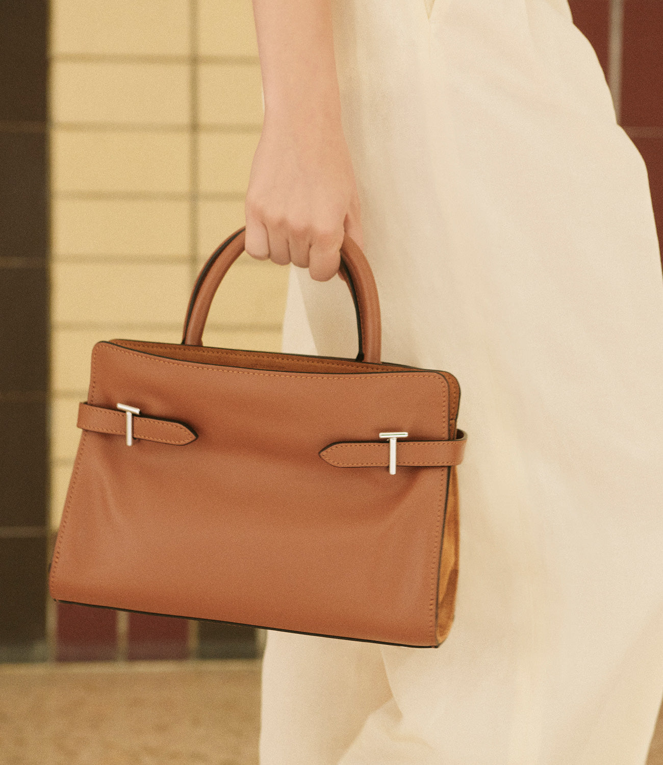 Cuir signature exclusif de notre Maison, embossé avec des lettres T microscopiques créant un motif distinctif et intemporel.