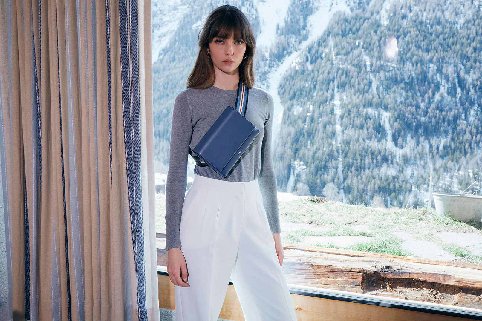 Mannequin, actrice et musicienne à ses heures perdues, Annabelle Belmondo a grandi entre la France et les États-Unis. Elle suit des études de journalisme, mais c'est finalement le monde de la mode et du cinéma qui lui tendent les bras. Pour notre nouvelle collection, nous lui avons proposé de partir à l’aventure, à l’ombre des montagnes et dans les brumes des lacs.