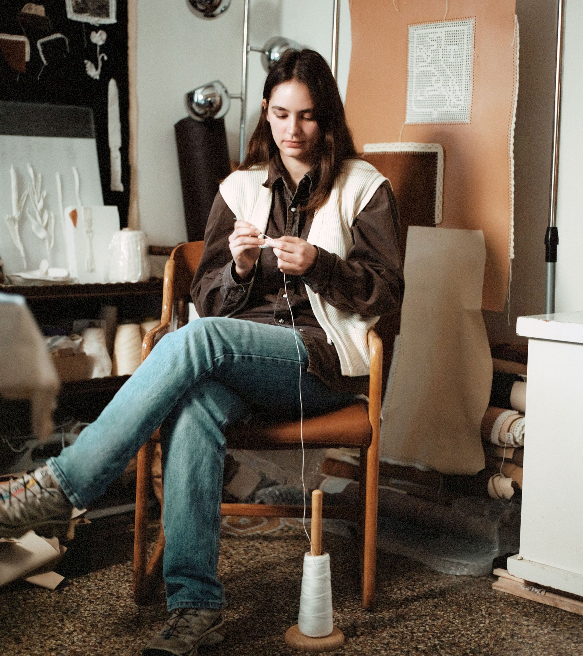 Es unatécnica bastante sencilla, que requiere poco material, pero que ofrece un campode posibilidades inmenso. Con pocos conocimientos, sabiendo hacer algunospuntos, ya puedes crear cosas complejas e infinitas. Lo que también me gusta esque es una artesanía doméstica antigua, que dice mucho sobre la casa, eltrabajo y el lugar de las mujeres. Tiene un toque de "abuela". Creoque es importante darle un giro, apropiármelo para modernizarlo. Crear nuevosobjetos.