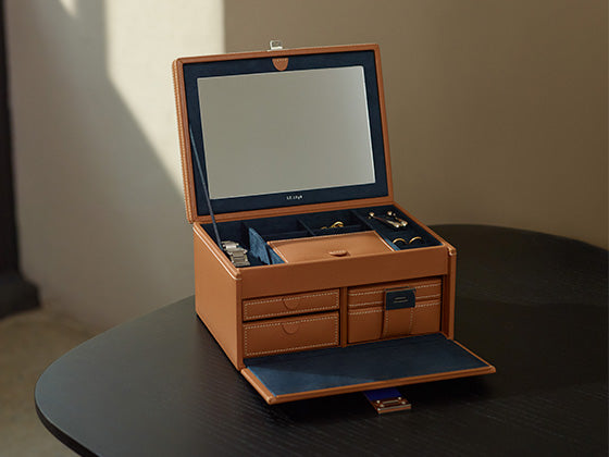 Sa structure dense le rend particulièrement résistant aux rayures, aux chocs et aux déformations liées à un usage régulier. C’est un cuir pensé pour la vie quotidienne, qui supporte l’humidité, les frottements ou les transports répétés sans compromettre son aspect. Cette robustesse le rend parfaitement adapté aux objets que l’on manipule souvent : maroquinerie de bureau, sacs de voyage ou petite maroquinerie.