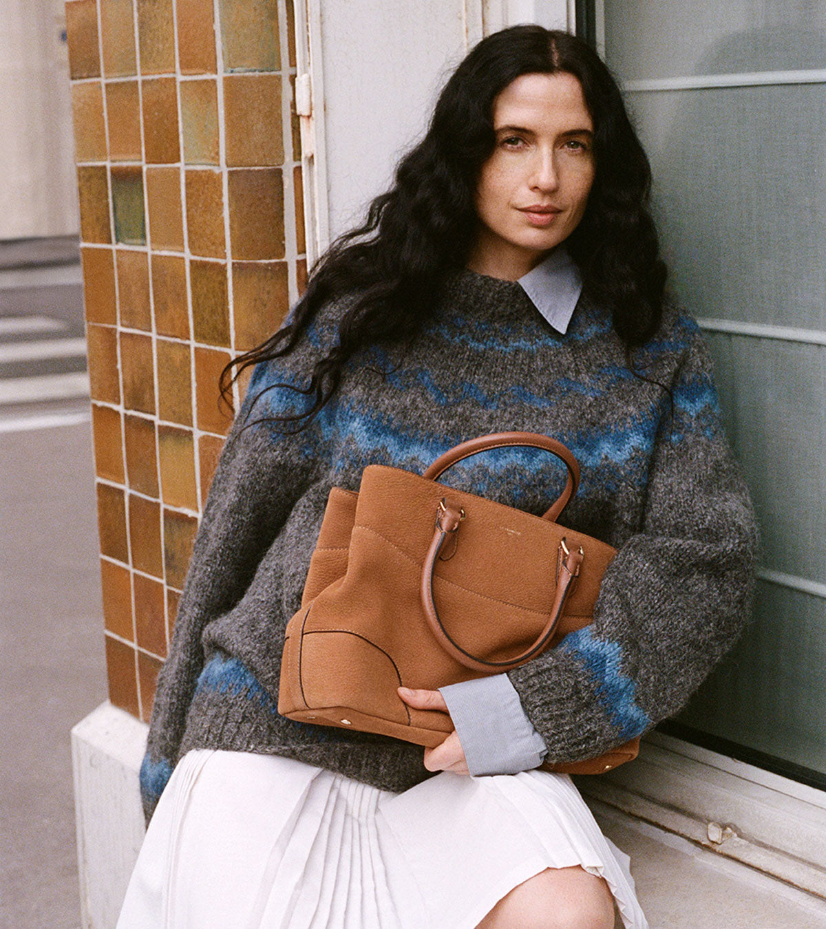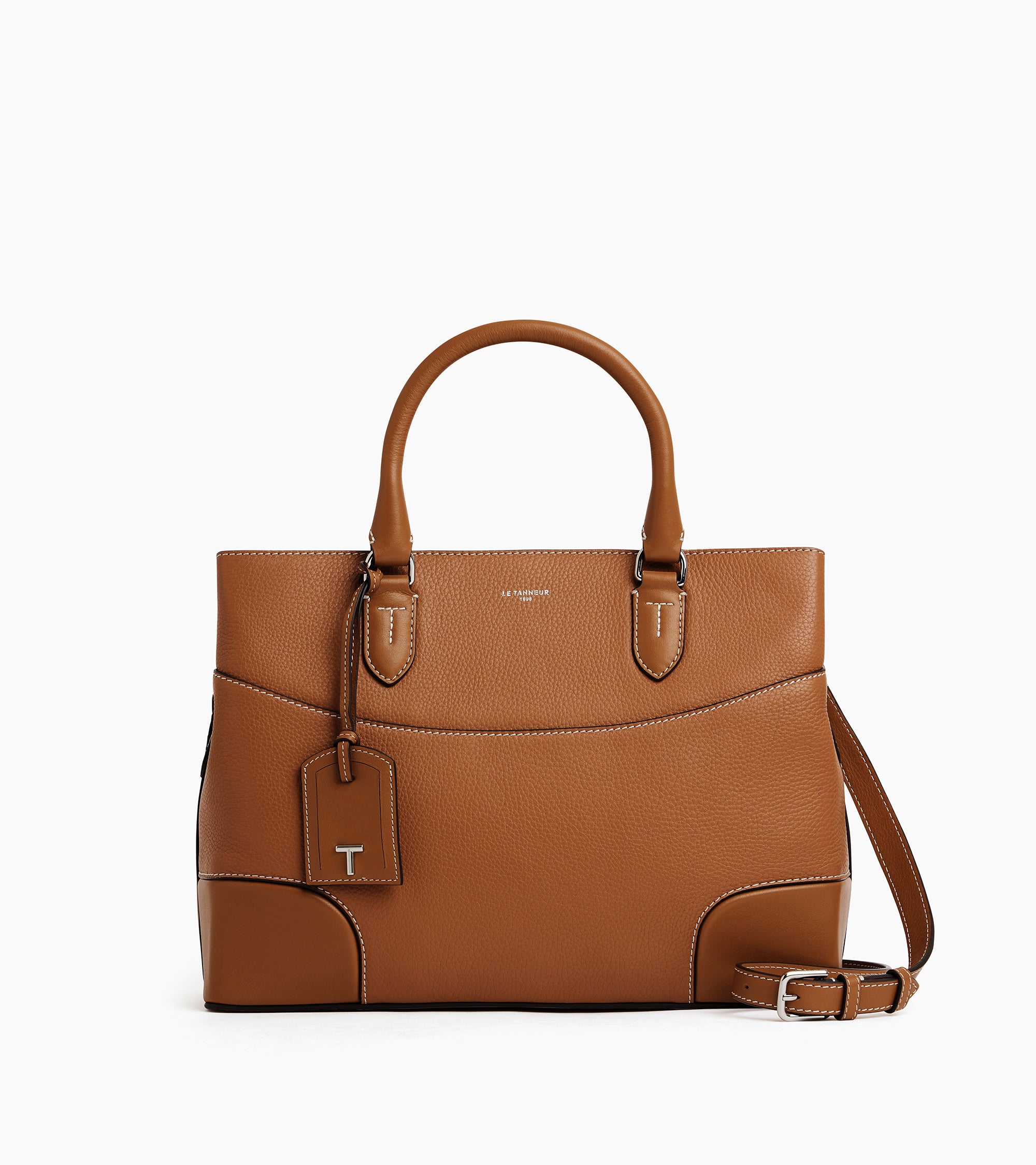 Disponible en una amplia gama de marroquinería pequeña y grande, Romy se presenta en cuero granuloso para un aspecto robusto. Se quiere identitaria y reconocible gracias a sus detalles únicos :